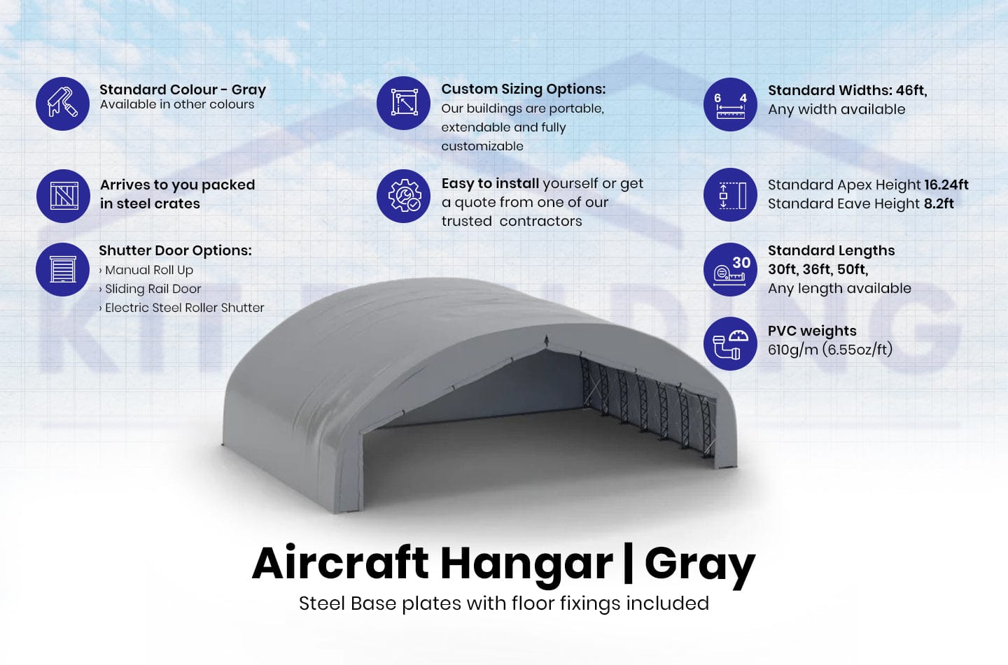 Kit Buildings Aircraft Hangars deliver exceptional protection and storage solutions for aviation enthusiasts, commercial operators, and airfield facilities. Constructed with double-truss galvanized steel frameworks and premium 610g (22oz) fire-resistant PVC covering, these professional aviation hangars provide secure, weather-resistant shelter for aircraft of all sizes. Customizable dimensions and configurations ensure optimal protection for single aircraft storage through to comprehensive aviation facility requirements.
